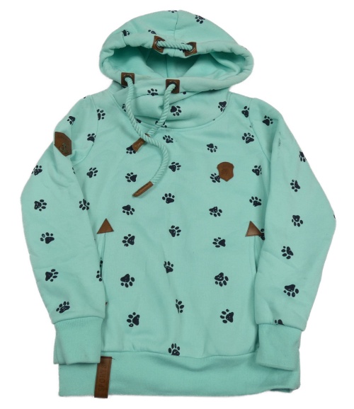 Mintová vzorovaná mikina s tlapkami a kapucňou
