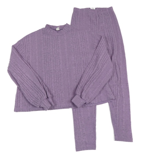 2set - Levandulová melírovaná rebrovaná úpletová mikina + legíny Shein