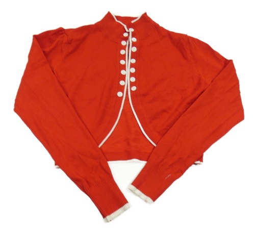 Červeno-biele svetrové bolerko s gombíkmi