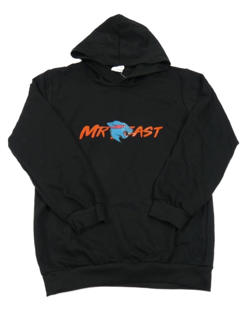 Čierna mikina so šelmou a nápisom a kapucňou foanja