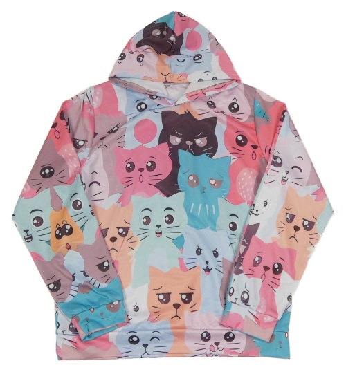 Ružovo-farebná vzorovaná mikina s kočičkami a kapucňou