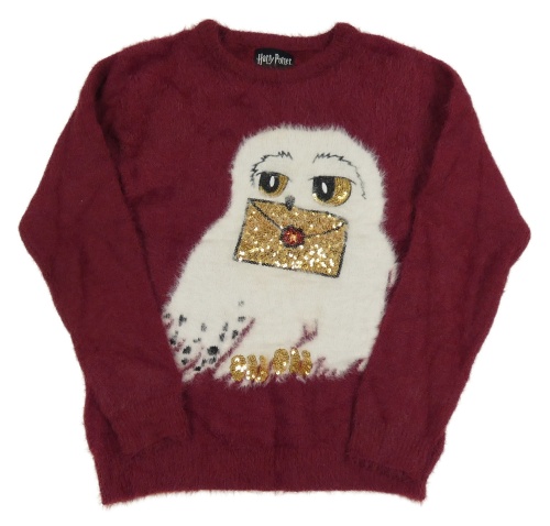 Vínový chlpatý sveter s Hedvikou s flitry - Harry Potter Primark