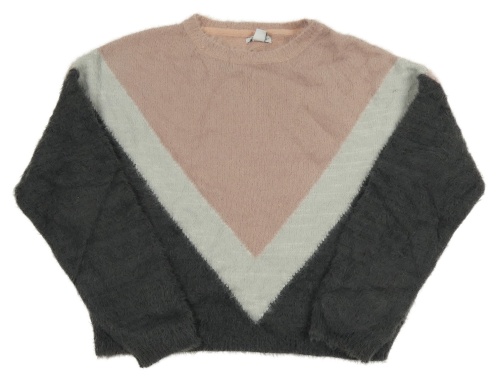 Ružovo-sivo-antracitový crop chlpatý sveter Primark