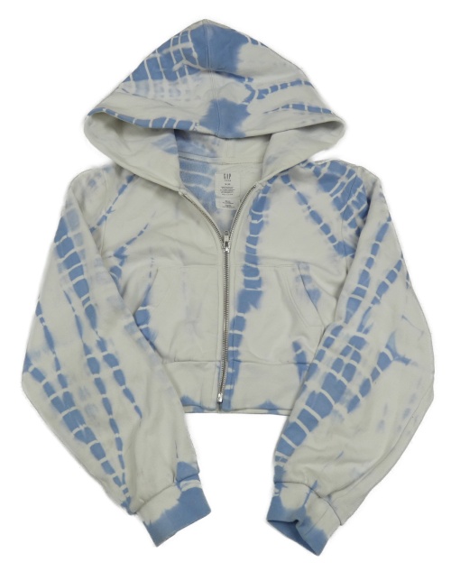 Bielo-svetlomodrá batikovaná prepínaci crop mikina s kapucňou GAP