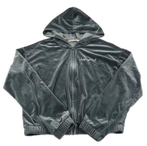 Tmavosivá zamatová prepínaci crop mikina s nápisom a kapucňou H&M