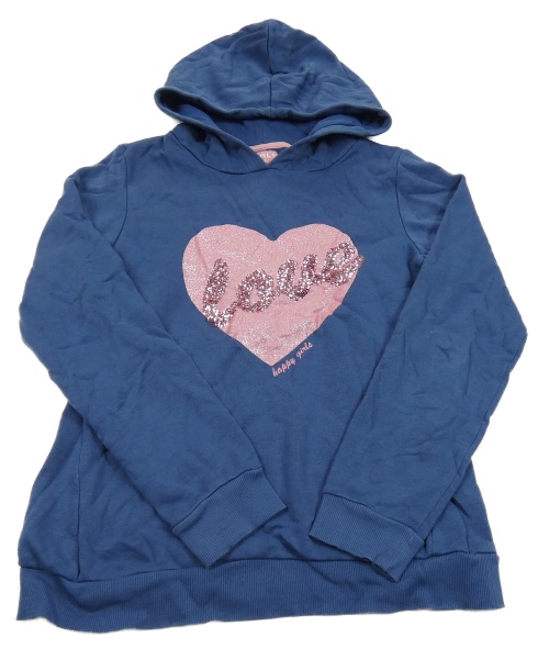 Tmavomodrá melírovaná mikina so trblietavým srdiečkom a nápisem z flitrů a kapucňou POCOPIANO