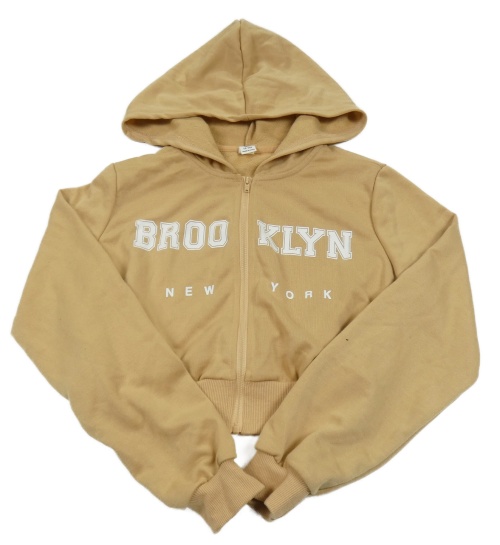 Béžová prepínaci crop mikina s nápismi a kapucňou Shein