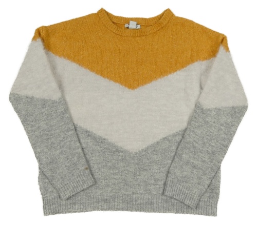 Hořčicovo-bielo-sivý melírovaný sveter PRIMARK