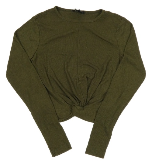 Khaki rebrované crop tričko s uzlom New Look