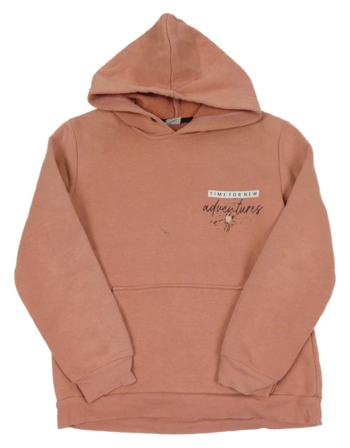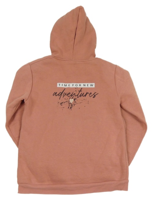 Světleskořicová tepláková mikina s nápismi a vreckom a kapucňou