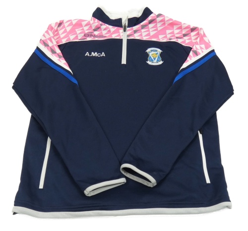 Neónově ružovo-bielo-tmavomdorá športová mikina s nášivkou
