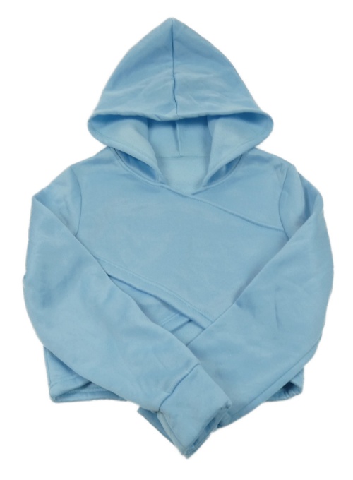 Svetlomodrá tepláková crop mikina s kapucňou SHEIN