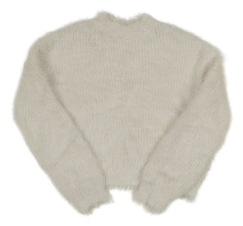 Biely chlpatý svetrový oversize rolák so trblietkami
