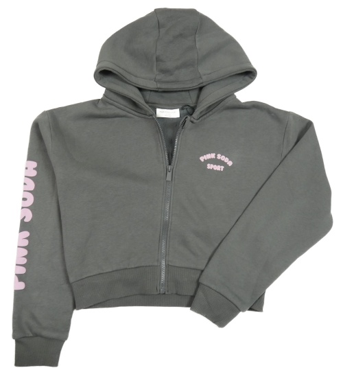 Tmavosivá prepínaci crop tepláková mikina s logom a kapucňou PINK SODA