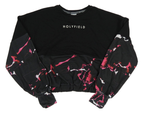 Čierno-ružová vzorovaná crop mikina s logom Holyfield