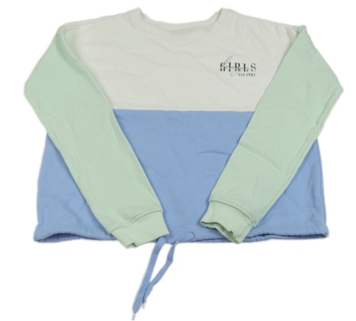 Bielo-modro-zelená crop mikina s nápisom Page one young