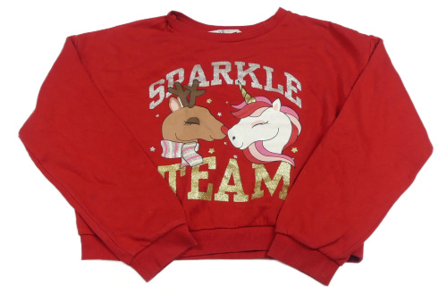 Červená crop mikina so sobom a jednorožcom H&M
