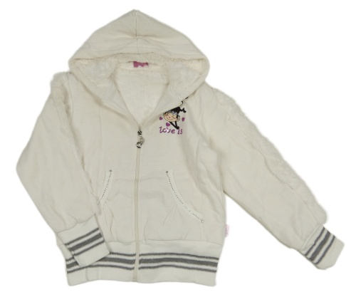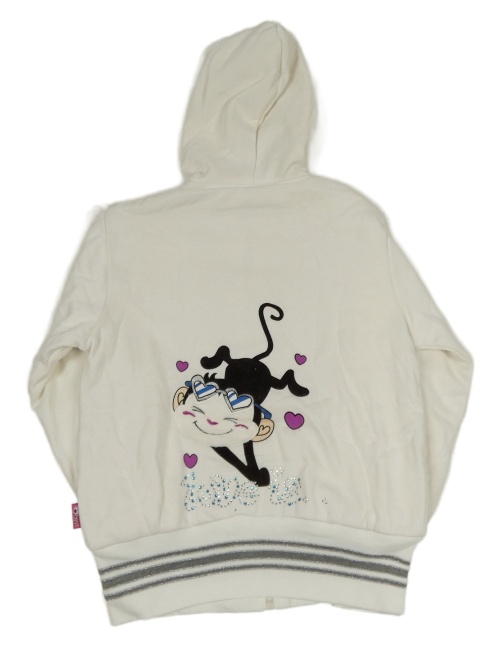 Biela zateplená prepínaci mikina s opicou a kapucňou