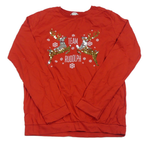 Červená ľahká mikina s jeleny z flitrů a nápisom Primark