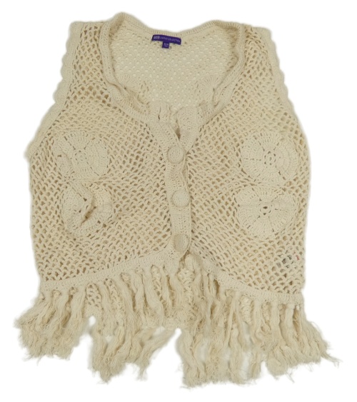 Béžová háčkovaná prepínaci vesta s strapcemi M&S