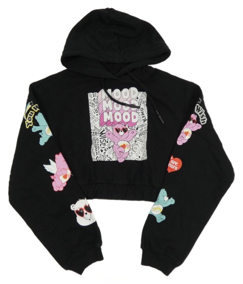 Čierna crop mikina s medvedíkmi a nápismi a kapucňou