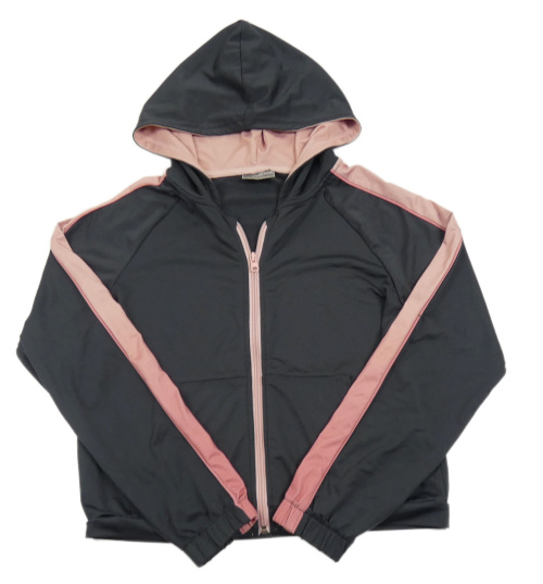 Antracitovo-staroružová športová prepínaci crop mikina s kapucňou Destination