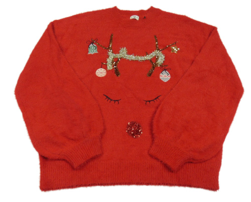 Nové - Červený chlpatý sveter so sobom F&F