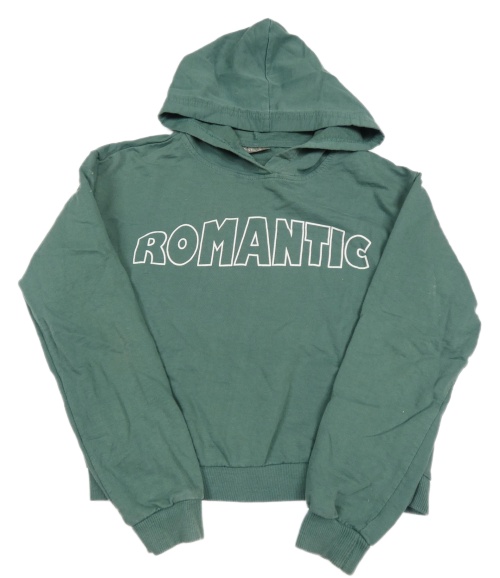 Tmavozelená crop mikina s nápisom a kapucňou