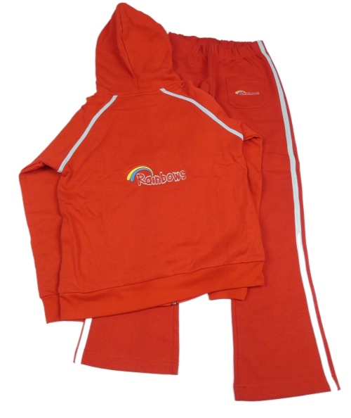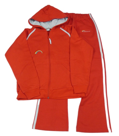 2 set - Červená prepínaci mikina s dúhou a kapucí + tepláky