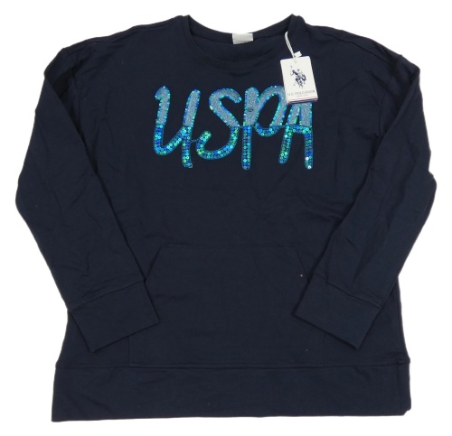 Nové - Tmavomodrá mikina s nápisem z flitrů U.S.A polo assn