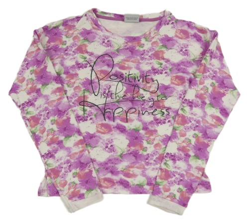 Bielo-fialovo-ružové kvetované crop tričko s nápisom Yigga