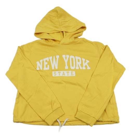 Tmavožltá crop mikina s nápismi a kapucňou H&M