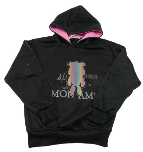 Čierna mikina s medvedíkom a kamienkami a kapucňou
