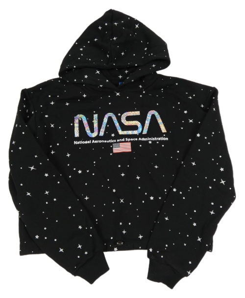 Čierna crop mikina s 3D logem NASA a kapucňou C&A