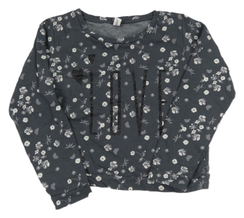 Tmavosivá crop mikina s kvietkami a motýlikmi a trblietavým nápisom YIGGA