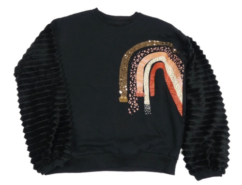 Čierna mikina s dúhou a flitrami a plyšovými rebrovanymi rukávy F&F