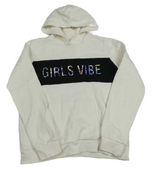 Bielo-čierna mikina s 3D nápisom a vreckom a kapucňou C&A