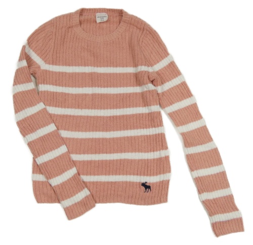 Ružovo-biely pruhovaný rebrovaný sveter Abercrombie&Fitch