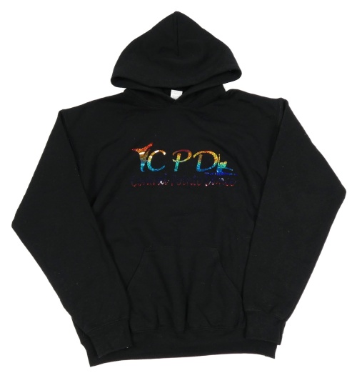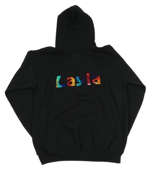 Čierna mikina s trblietavým nápisom a kapucňou Gildan