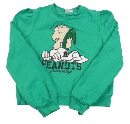 Zelená crop mikina s potiskem - Snoopy a Linus van Pelt a flitrami a kamienkami