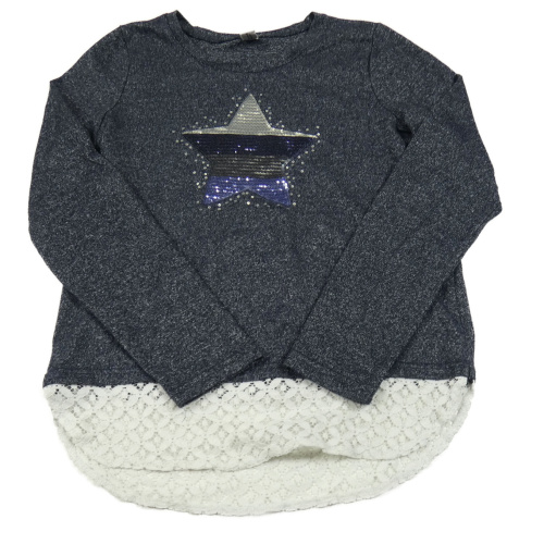 Tmavomodrý sveter s hvězdou z flirů a čipkou Yigga