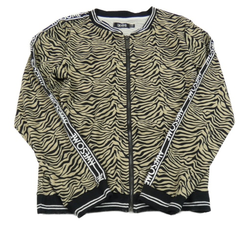 Hnedo-čierna vzorovaná prepínaci mikina s nápisy na rukávech