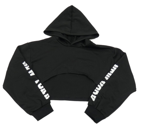 Čierna športová crop mikina s nápisom a kapucňou