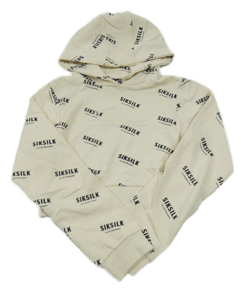 Smotanová crop mikina s nápismi a kapucňou Siksilk