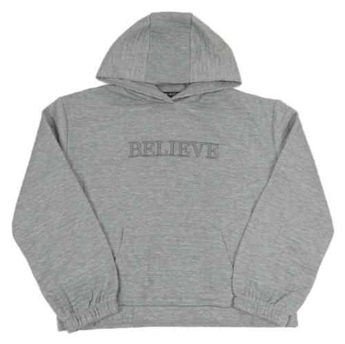 Sivá melírovaná kostkovaná/prošívaná crop mikina s nápisom a vreckom a kapucňou PRIMARK