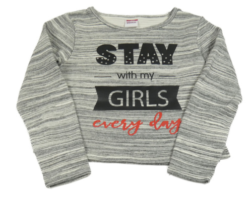 Sivo-biela pruhovaná melírovaná silnější crop mikina s nápismi YIGGA