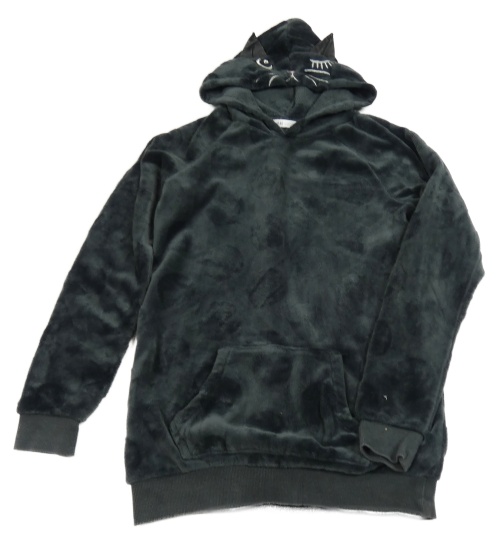 Čiernošedá bodkovaná á plyšová mikina s vreckom a kapucí - mačička H&M