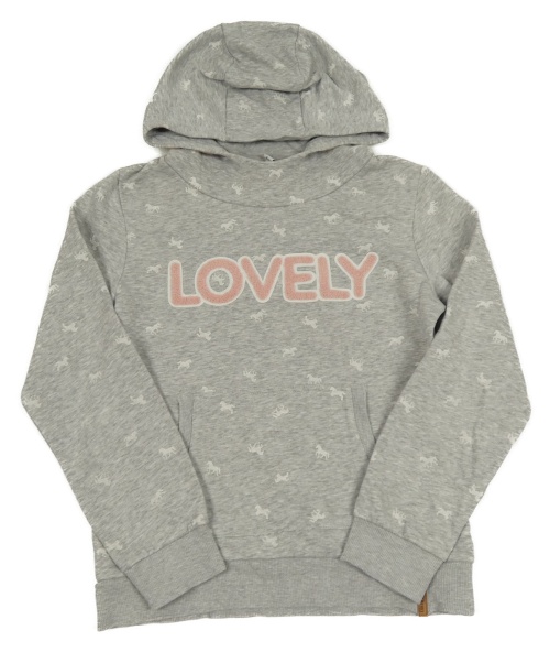 Sivá melírovaná mikina s nápisom a koníky a vreckom a kapucňou YIGGA