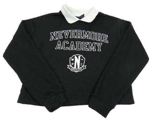 Čierno-biela crop mikina s nápismi a límečkem - Wednesday