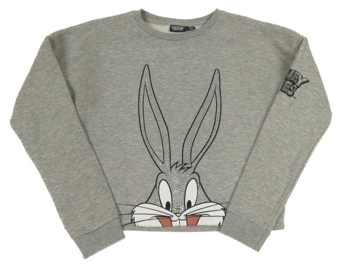 Sivá melírovaná crop mikina s Bugs Bunnym s kamienkami Primark